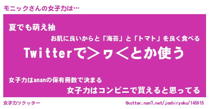 | ヘコむあだ名 | 『モニにゅー』『なまこ酢』 |