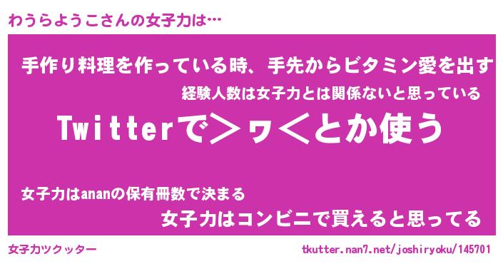 | ヘコむあだ名 | 『わうにー』『つくし』『わうを』 |
