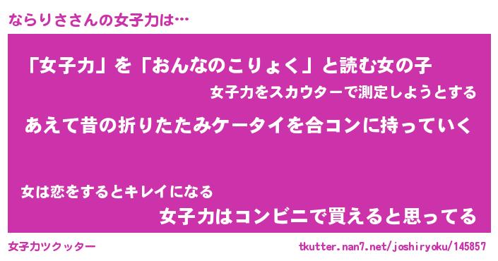 | 伝説のあだ名 | 『伝説のスナイパーならりさ』 |