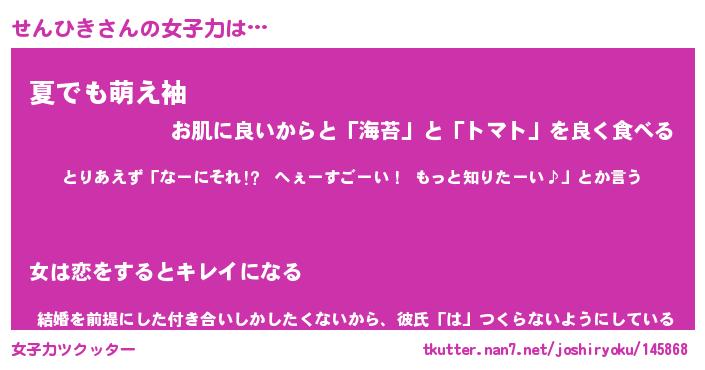 | 意味不明あだ名 | 『ペロリンせんひき』『永久保存せんひき』 |