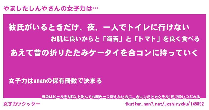 | 恥ずかしいあだ名 | 『プリティーやましたしんや』『やまちん』 |