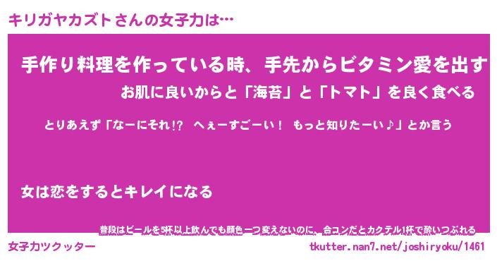 | ヘコむあだ名 | 『キリっふぃ~』『つくし』『キリお』 |