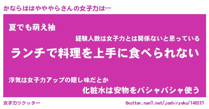 | ヘコむあだ名 | 『かなにゅー』『なまこ酢』 |