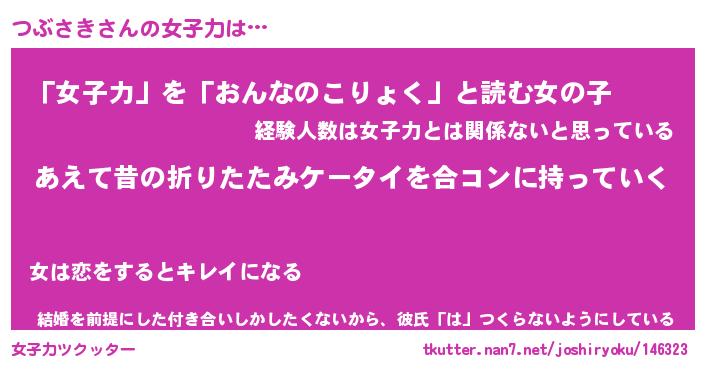 | ファンタジー風あだ名 | 『ツブフェル』『エターナルツブサキー』 |