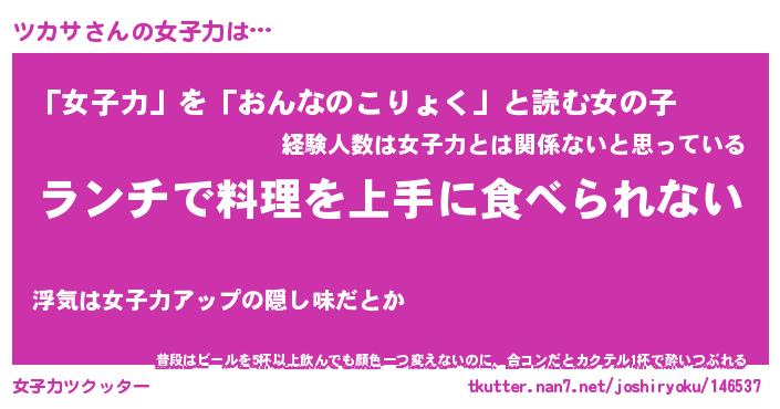 | ファンタジー風あだ名 | 『ツカフェル』『エターナルツカサー』 |