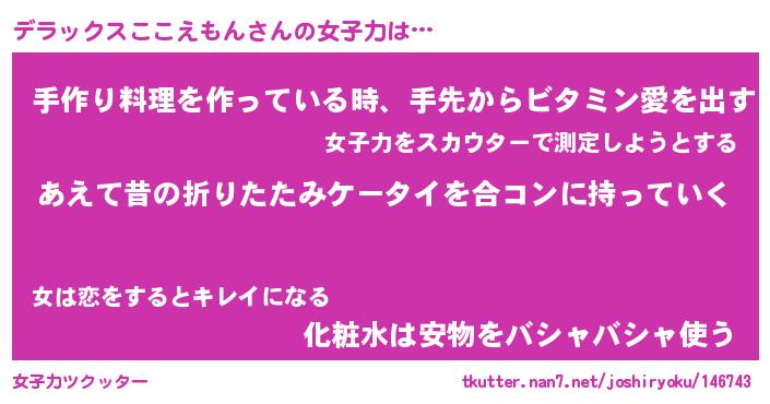 | 男性向けラノベタイトル風あだ名 | 『デラックスここえもんの憂鬱』 |