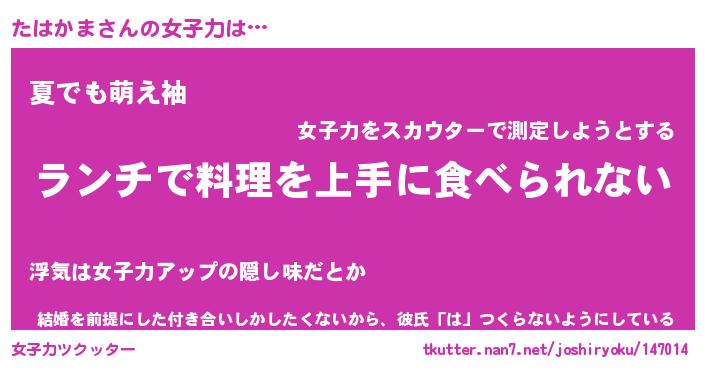 | 意味不明あだ名 | 『ペロリンたはかま』『永久保存たはかま』 |