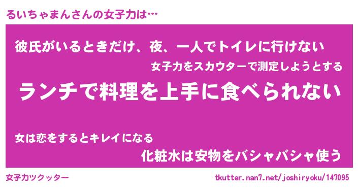 | ヘコむあだ名 | 『るいふぇ~』『豆乳』『るいを』 |