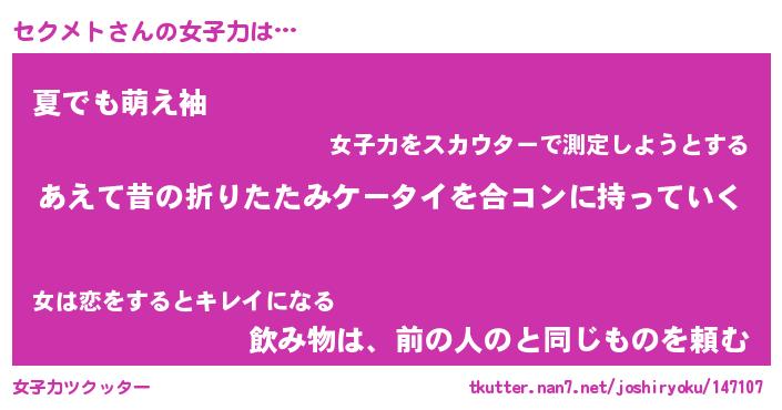 | 男性向けラノベタイトル風あだ名 | 『セクメトの憂鬱』 |