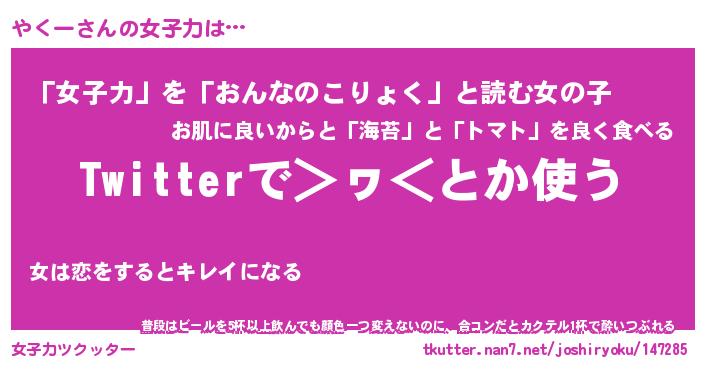 | 意味不明あだ名 | 『ペロリンやくー』『やくーフォーエバー』 |