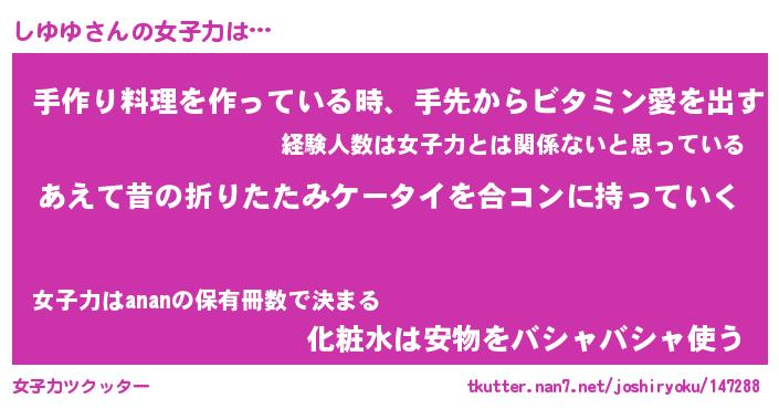 | ヘコむあだ名 | 『しゆにゅー』『牛乳』『しゆっ子』 |