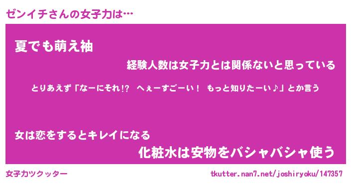 | ファンタジー風あだ名 | 『ゼンフェル』『エターナルゼンイチー』 |
