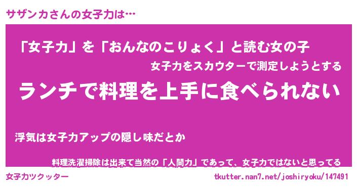 | ヘコむあだ名 | 『サザにゅー』『酢こんぶ』 |