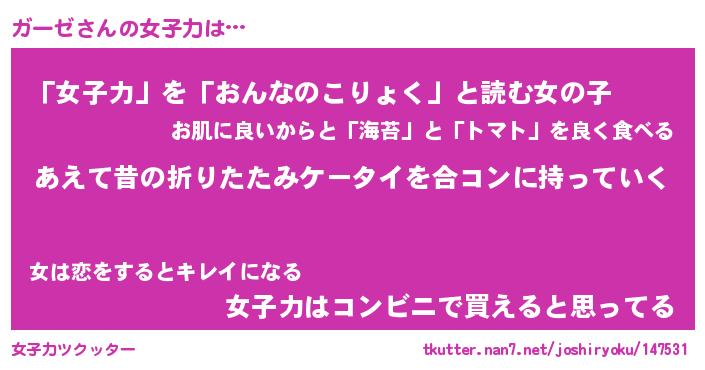 | 恥ずかしいあだ名 | 『プリティーガーゼ』『ガーっちょ』 |
