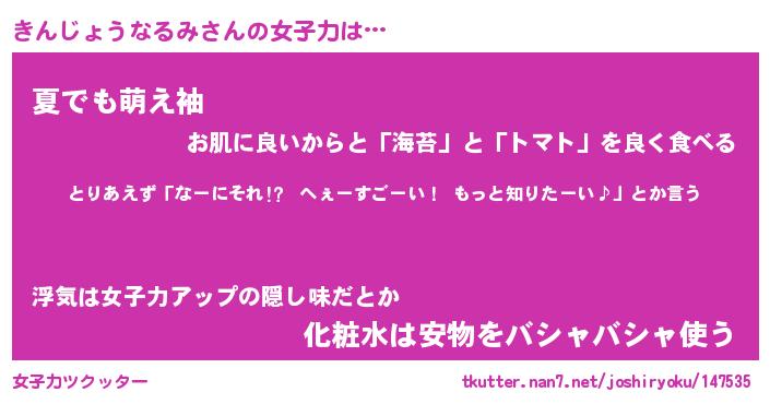 | 女子向けラノベタイトル風あだ名 | 『きんじょうなるみ姫と円卓の騎士』 |