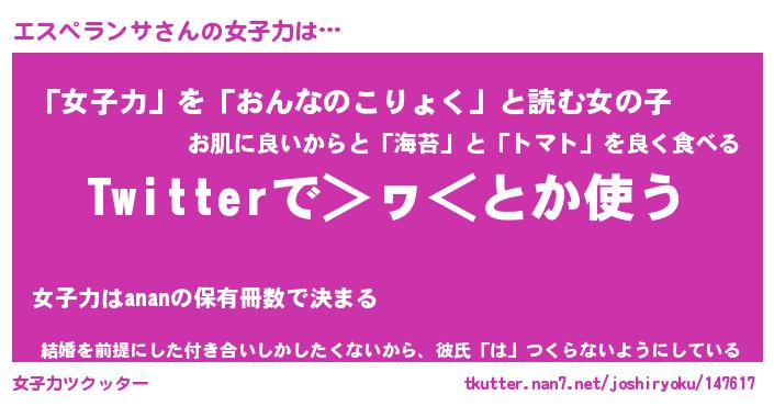 | 男性向けラノベタイトル風あだ名 | 『エスペランサの憂鬱』 |
