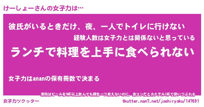 | ヘコむあだ名 | 『けーにー』『つくし』『けー太郎』 |