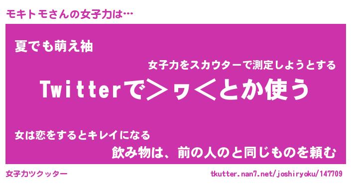 | 男性向けラノベタイトル風あだ名 | 『モキトモの憂鬱』 |