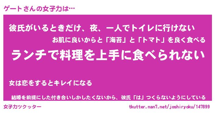 | 自動車の名前っぽいあだ名 | 『ゲーティマ』『ゲクア』『デミゲ』 |