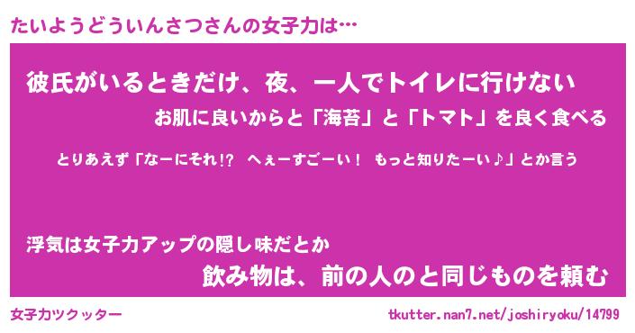 | ヘコむあだ名 | 『たいにー』『なまこ酢』『たいお』 |