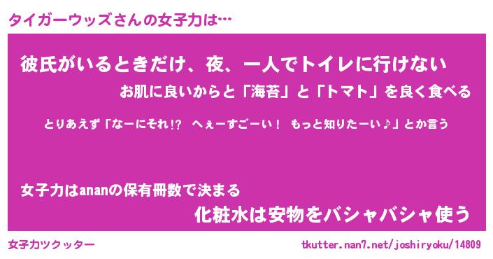 | 女子向けラノベタイトル風あだ名 | 『誰かこのタイガーウッズを説明してください! ~契約から始まるウェディング~』 |