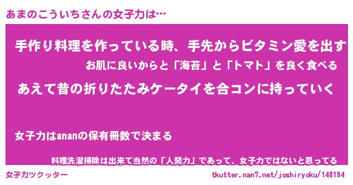 | ヘコむあだ名 | 『あまふぇ~』『つくし』『あまを』 |