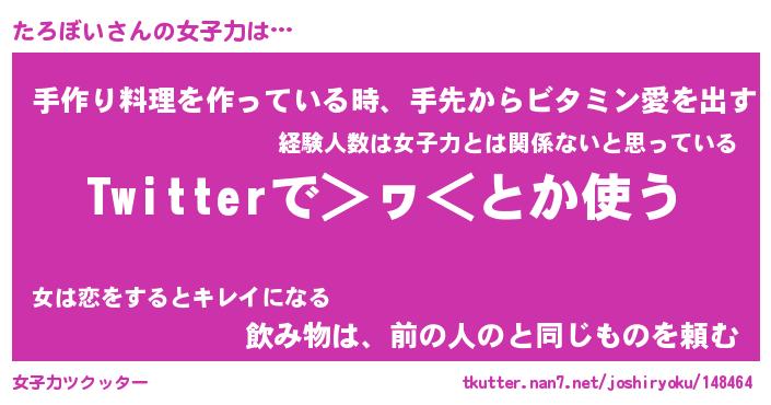 | ヘコむあだ名 | 『たろっふぃ~』『つくし』 |