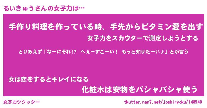 | ファンタジー風あだ名 | 『ルイフェル』『エターナルルイキュウー』 |