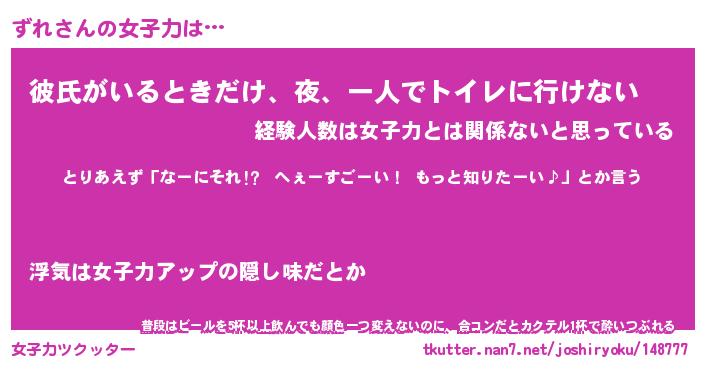 | ヘコむあだ名 | 『ずれもー』『なまこ酢』『ずれを』 |