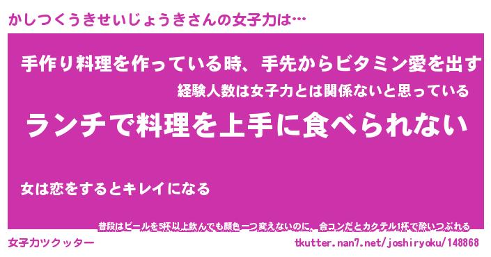 | ヘコむあだ名 | 『かしもー』『なまこ酢』 |