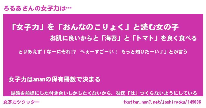 | ヘコむあだ名 | 『ろるもー』『豆乳』『ろるお』 |