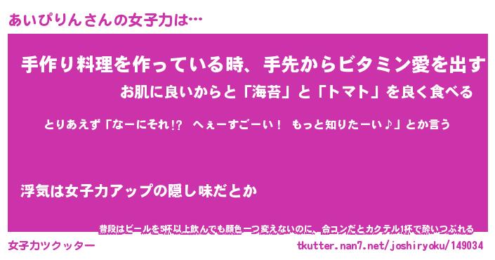 | ヘコむあだ名 | 『あいっふぃ~』『牛乳』『あいを』 |