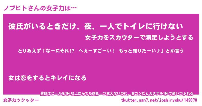 | ファンタジー風あだ名 | 『ノブフェル』『エターナルノブヒトー』 |