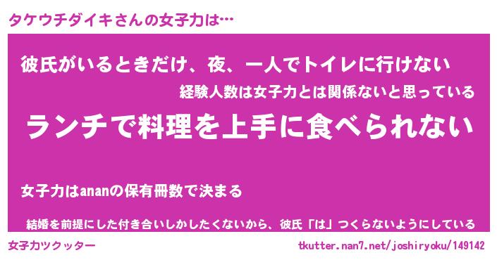 | ヘコむあだ名 | 『タケにゅー』『豆乳』『タケっぺ』 |
