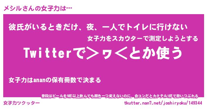 | ファンタジー風あだ名 | 『メシフェル』『エターナルメシルー』 |
