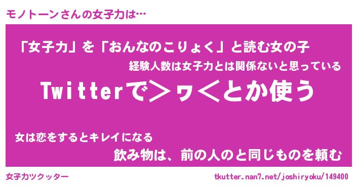 | ポケモン風あだ名 | 『モノチュウ』『モノトダネ』 |