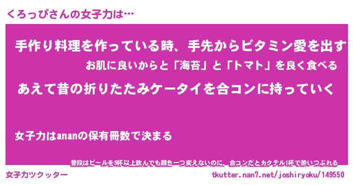 | 恥ずかしいあだ名 | 『プリティーくろっぴ』『くろっちょ』 |