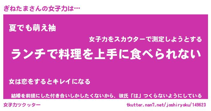 | 意味不明あだ名 | 『ペロリンぎねたま』『永久保存ぎねたま』 |