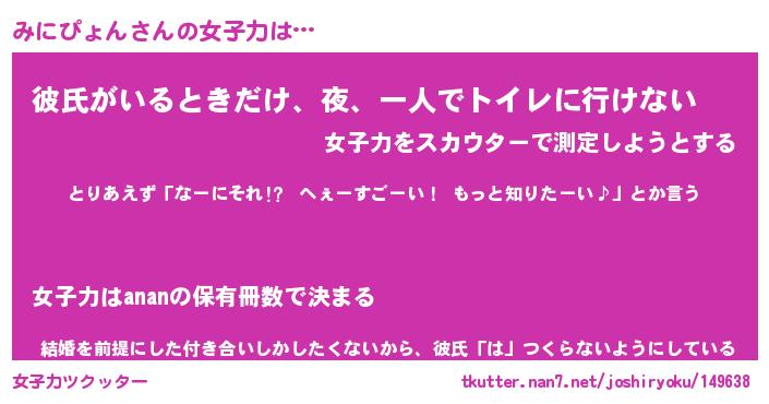 | ヘコむあだ名 | 『みにふぇ~』『豆乳』『みにっ子』 |