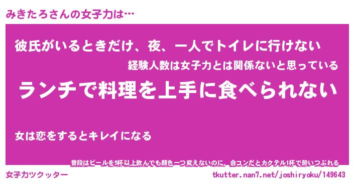 | ヘコむあだ名 | 『みきふぇ~』『豆乳』『みきぷりん』 |