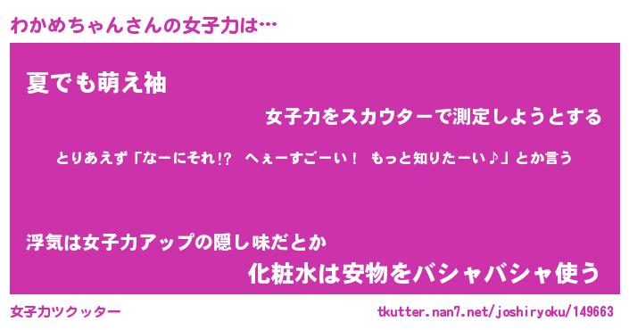 | ポケモン風あだ名 | 『ワカチュウ』『ワカメダネ』 |