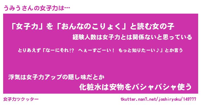 | ファンタジー風あだ名 | 『ウミフェル』『エターナルウミウー』 |