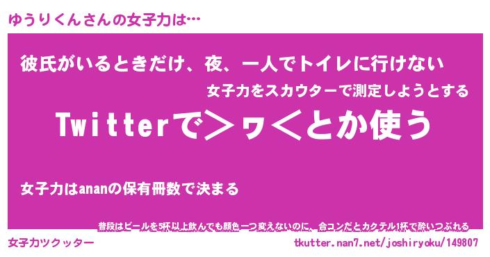 | ヘコむあだ名 | 『ゆうにー』『つくし』『ゆうお』 |