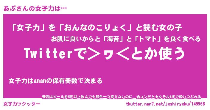 | ヘコむあだ名 | 『あぷにー』『レバニラ』『あぷを』 |