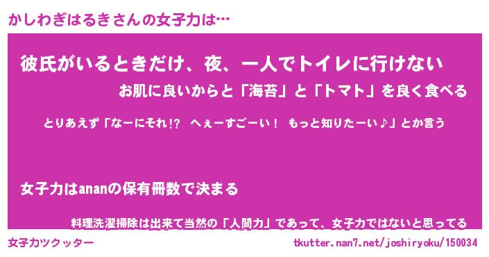 | 恥ずかしいあだ名 | 『プリティーかしわぎはるき』『かしちん』 |