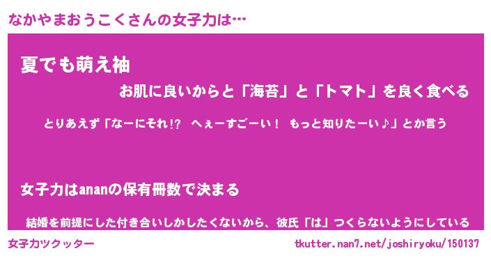 | ヘコむあだ名 | 『なかっふぃ~』『なまこ酢』 |