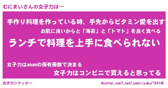 | ヘコむあだ名 | 『むにふぇ~』『牛乳』『むにっちょ』 |