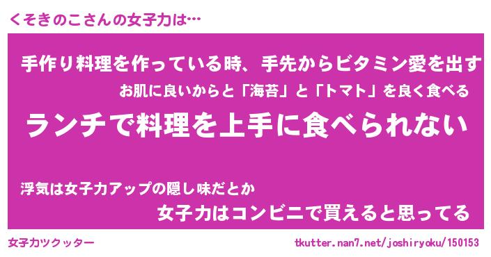 | ヘコむあだ名 | 『くそにゅー』『つくし』『くそっ子』 |