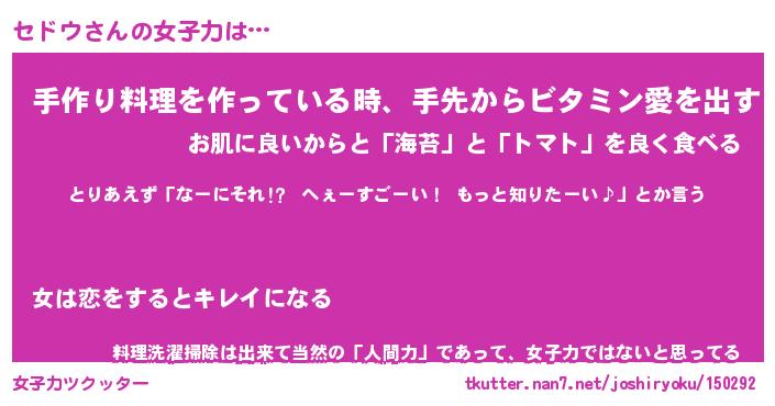 | ヘコむあだ名 | 『セドにゅー』『つくし』『セドっぺ』 |