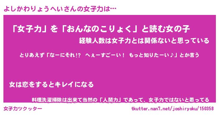| ヘコむあだ名 | 『よしふぇ~』『酢こんぶ』 |